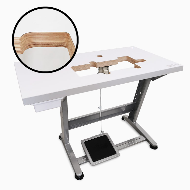 Miza TSM Premium - specialna miza za industrijske šivalne stroje izdelana iz brezovega lesa, odporna proti vlagi (30 vezanih plošč), ki uspešno zaduši vibracije delovnega stroja. PREMIUM miza za šivalne stroje je prevlečena s posebnim laminatom, ki je odporen proti udarcem, odrgninam in trščenju. Stranice mize so zaščitene z ABS trakovi, ki ščitijo pred udarci. Ne vsebuje škodljivih snovi.